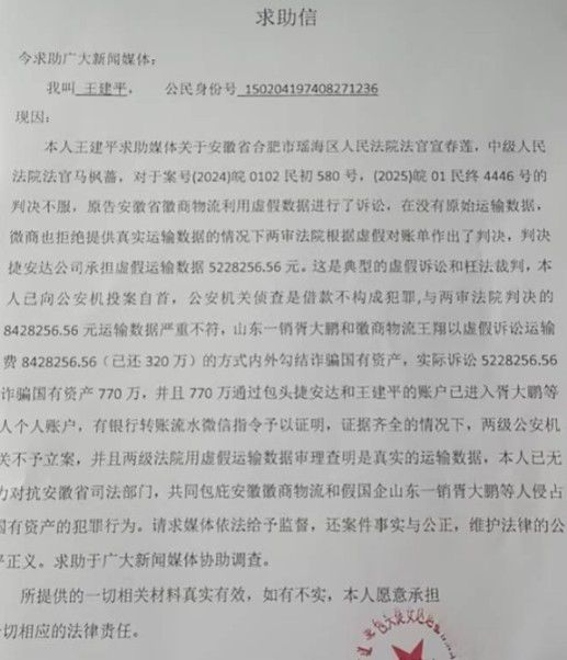 一起原本普通的运输合同纠纷,在历经一审、二审后,演变成了一场涉及5228256.56元巨额运费、460万元国资去向不明的法律与道德博弈。再审申请人包头捷安达运输有限公司(下称“包头捷安达”)与法定代表人王建平,近日向安徽省高级人民法院提出再审申请,指控原审判决存在重大事实认定错误。