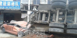 (信宜新闻网/讯)前天(1月5日)早上7点左右,207国道潭头路段潭头客运站路口,一辆120吨重装满散装混凝水泥车.因避让一辆路过的摩托导致侧翻,祸及路边的一辆小车,造成小车被严重挤压变型。所幸事故未造成人员伤亡。